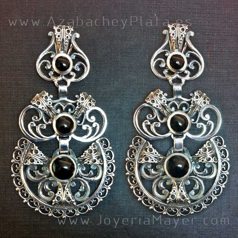 Traditional Galician silver and jet earrings
