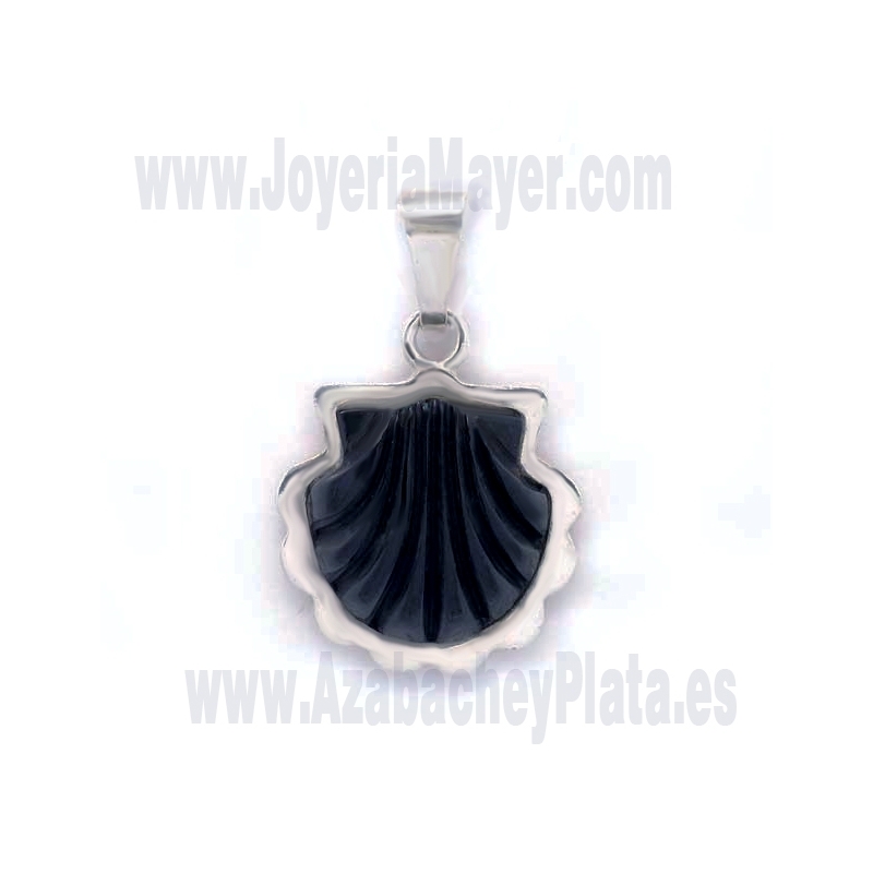 Shell pendant silver and jet, mod. scallop mounted light jet.