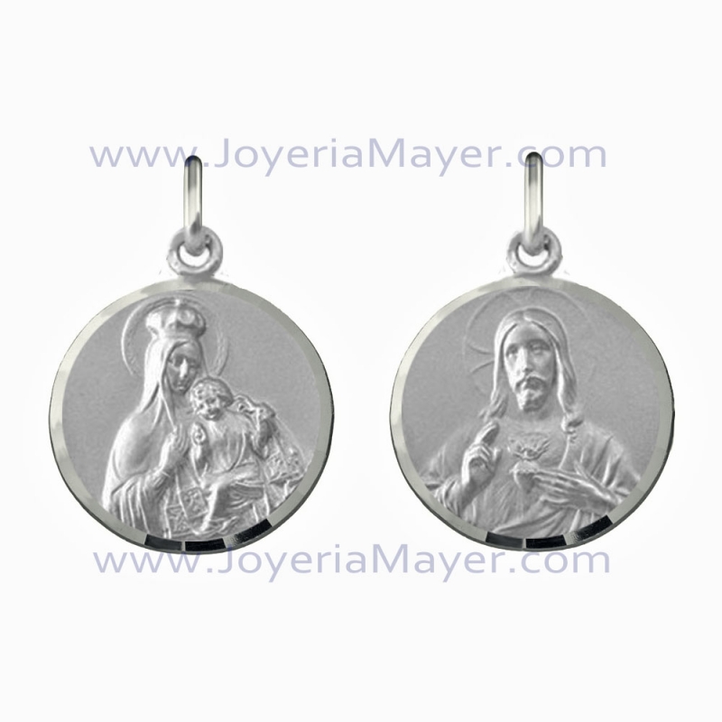 Silver Scapular Medal, Virgen del Carmen and Sacred Heart, mod. scapular medal round.