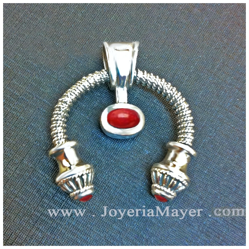 TCeltic silver and coral pendant *, mod. Celtic pendant torque coral and silver.