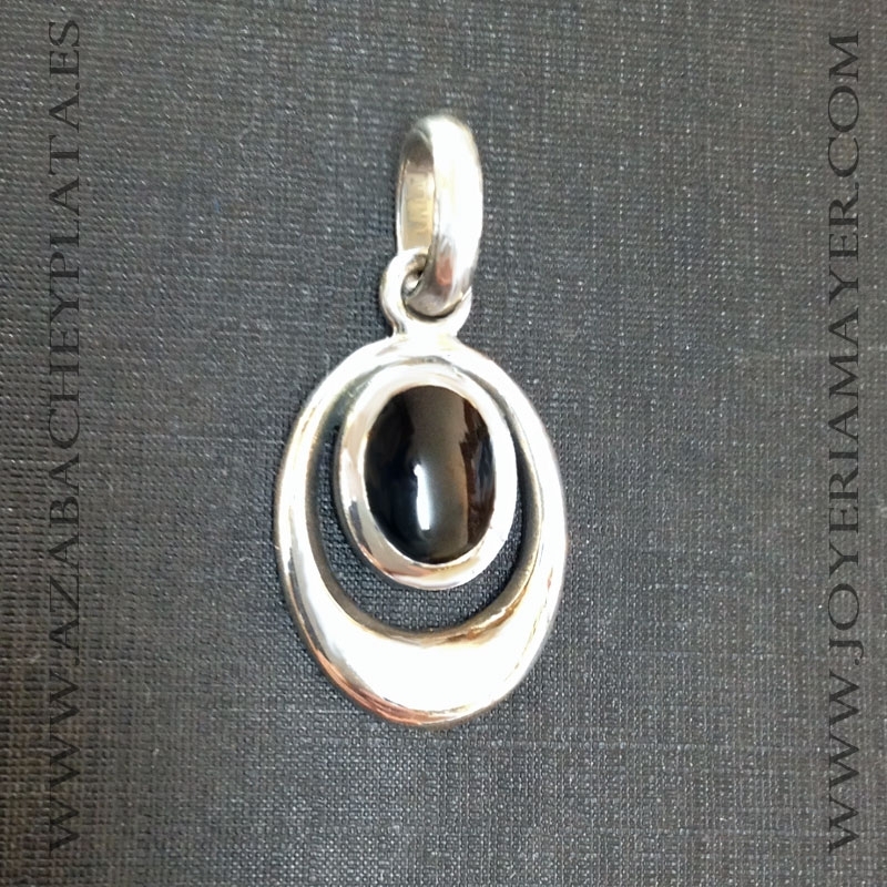 Pendant jet and silver 925, mod. pendant jet and silver oval.