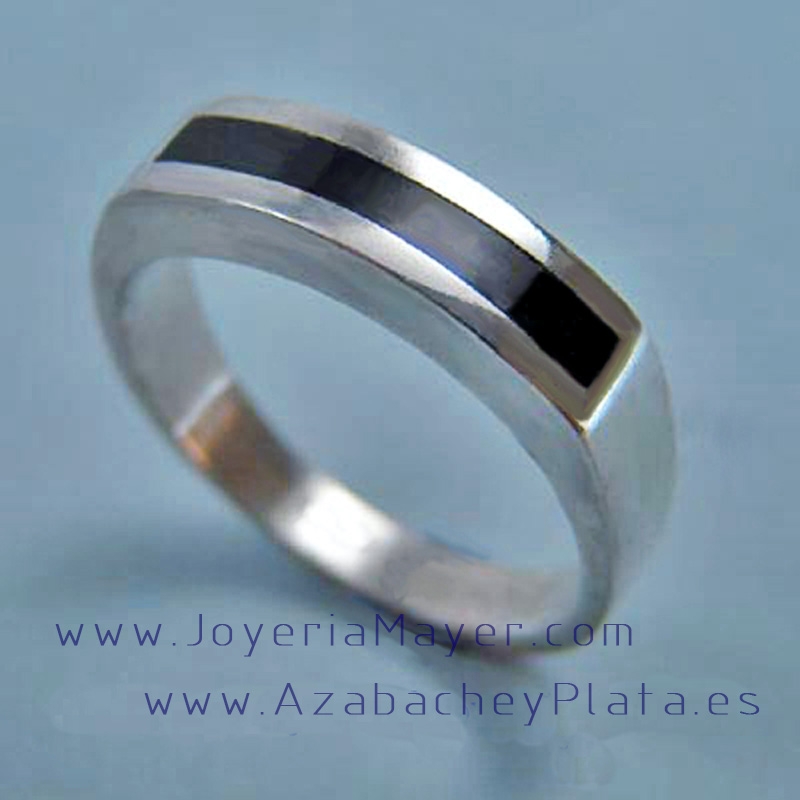 Anillo de plata de ley y azabache, mod. anillo de plata y azabache alianza alta.