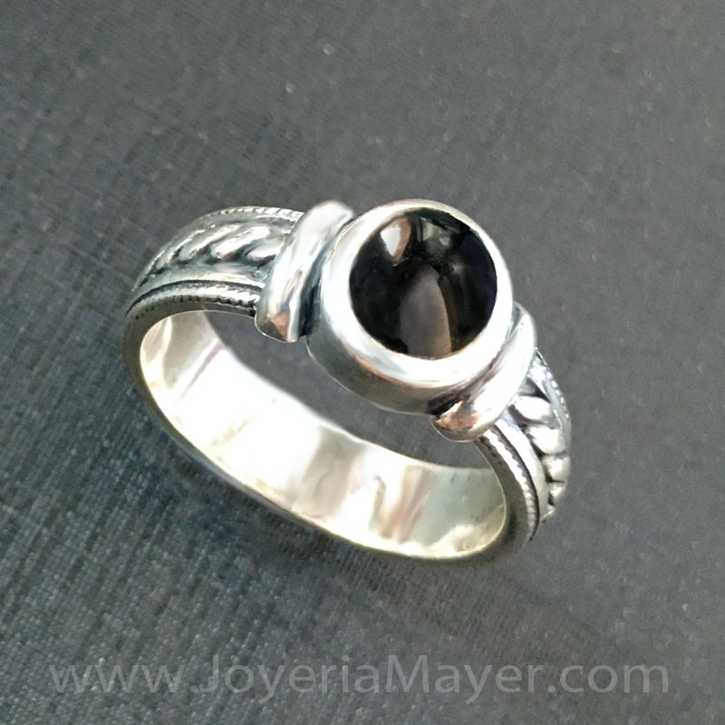 Anillo de plata de ley 925 y azabache, mod. anillo de plata y azabache oval en cordón.