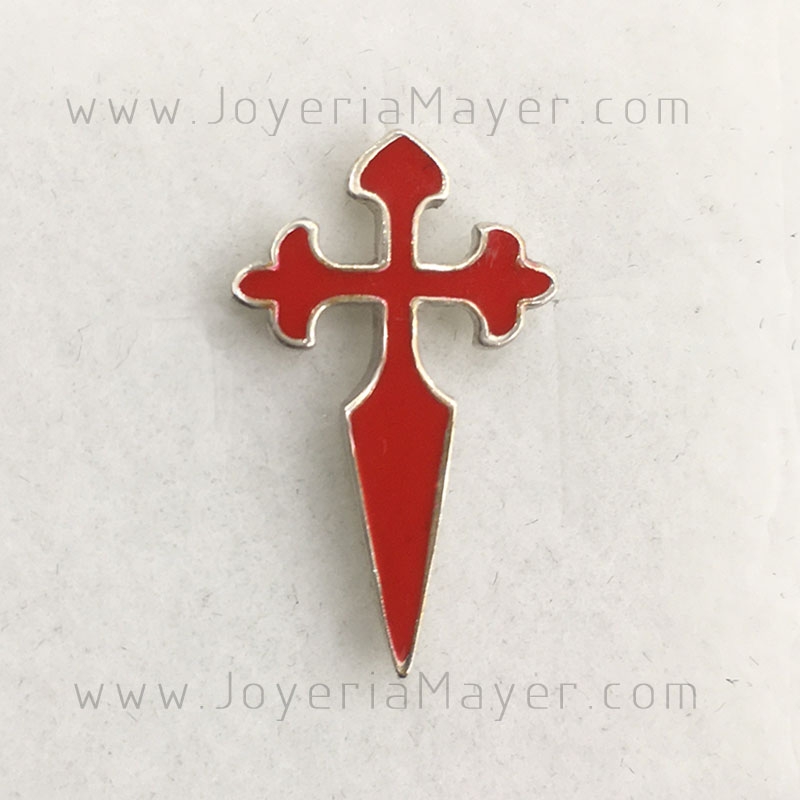 Pin de plata cruz de Santiago, mod. pin de plata cruz de Santiago roja .