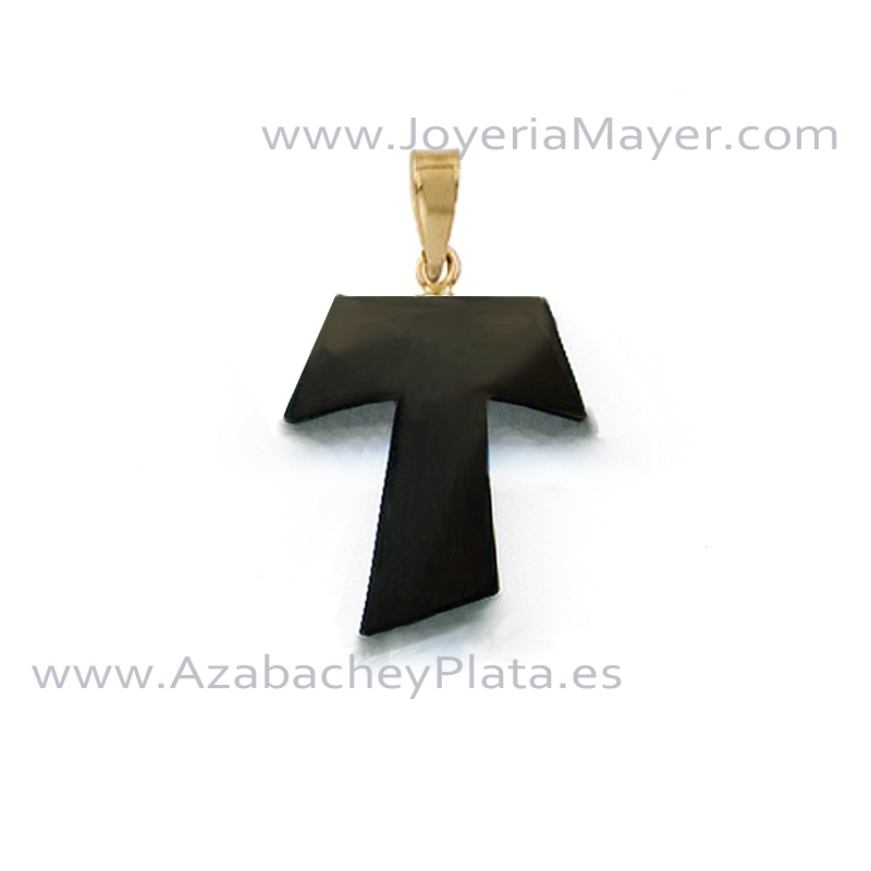 Cruz de oro y azabache, mod. cruz tau de oro y talla de azabache.