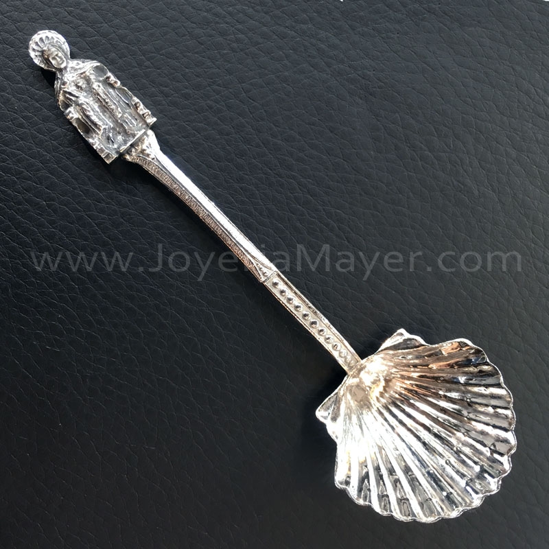 Cuchara cacillo de plata de ley 925, plata envejecida, fabricación compostelana, mod. Cacillo de plata Apóstol Santiago altar.
