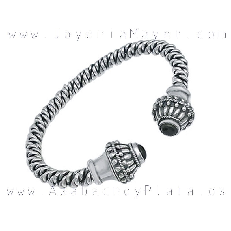 Pulsera torque de plata y azabache, mod. pulsera torque celta de plata y azabache gallones.