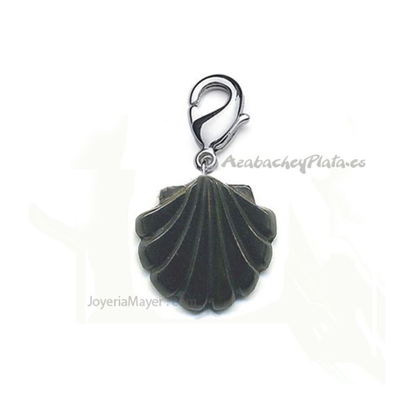 Colgante charm concha vieira de plata y azabache, para pulsera, con cierre mosquetón, mod. charm concha de azabache y plata pequeño.