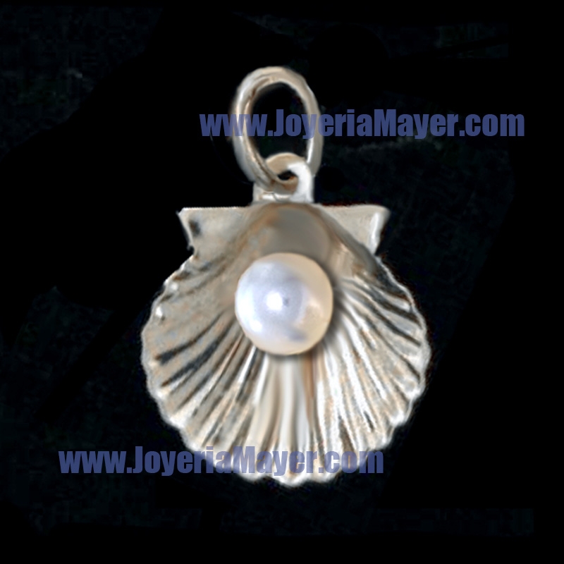Colgante concha (vieira) de Compostela de plata de ley, mod. concha de Compostela de plata con perla.