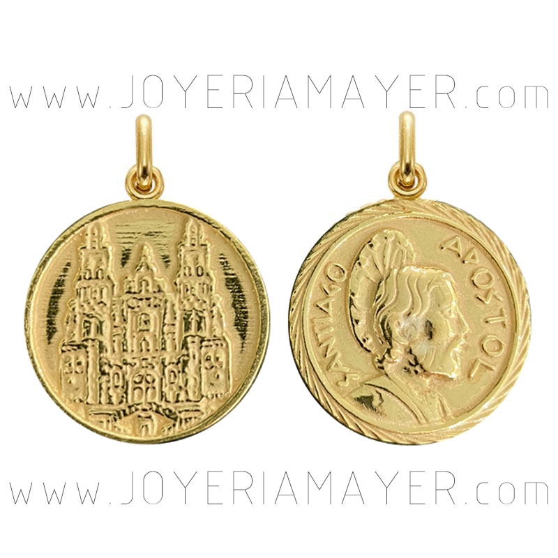 Medalla de plata 925 dorada doble, Apóstol Santiago y Catedral de Santiago, mod. medalla de plata dorada Apóstol y Catedral de Santiago.