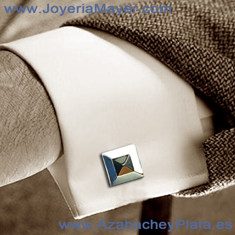 Gemelos de plata y azabache, mod. gemelos de plata y azabache cuadrado liso.