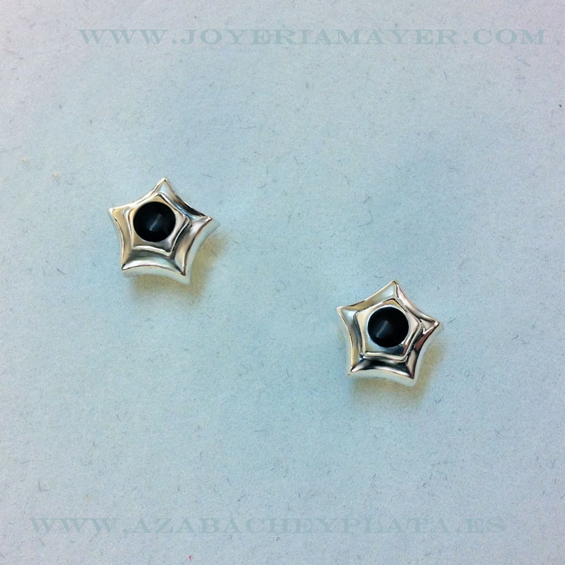 Pendientes de plata y azabache , cierre presión, mod. pendientes de plata y azabache estrella pequeña.
