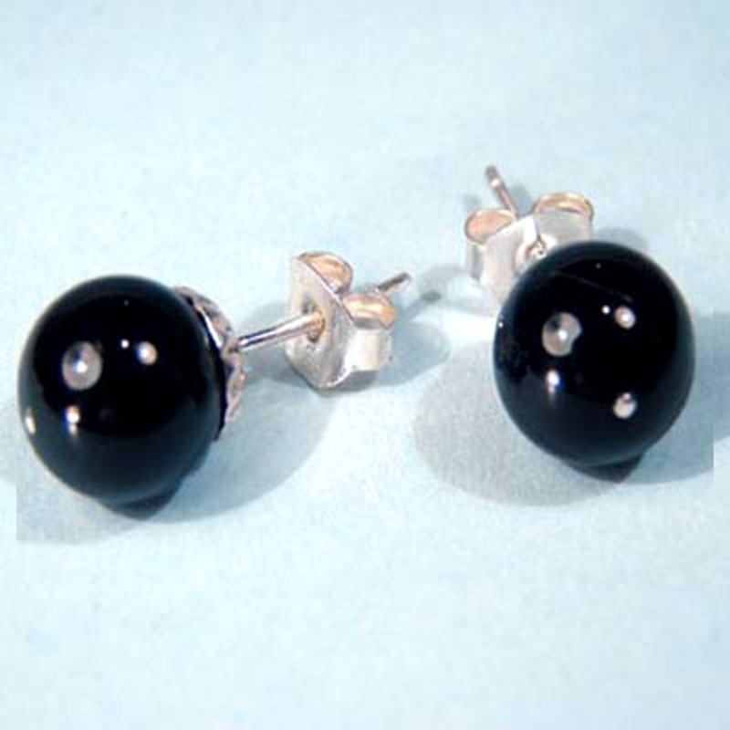 Pendientes de plata 925 y azabache, cierre tuerca presión, mod. pendientes de plata y azabache bola lisa.